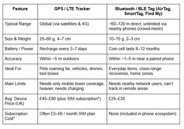 Quick Compare: GPS vs Bluetooth (BLE) Trackers